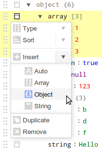 childs of an array or object, the field can also be dragged horizontally